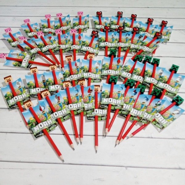 Podés pedir el modelo de topper de lápiz con forma de cubito de nuestra web que te guste (mismo modelo) de topper cada 10 unidades.